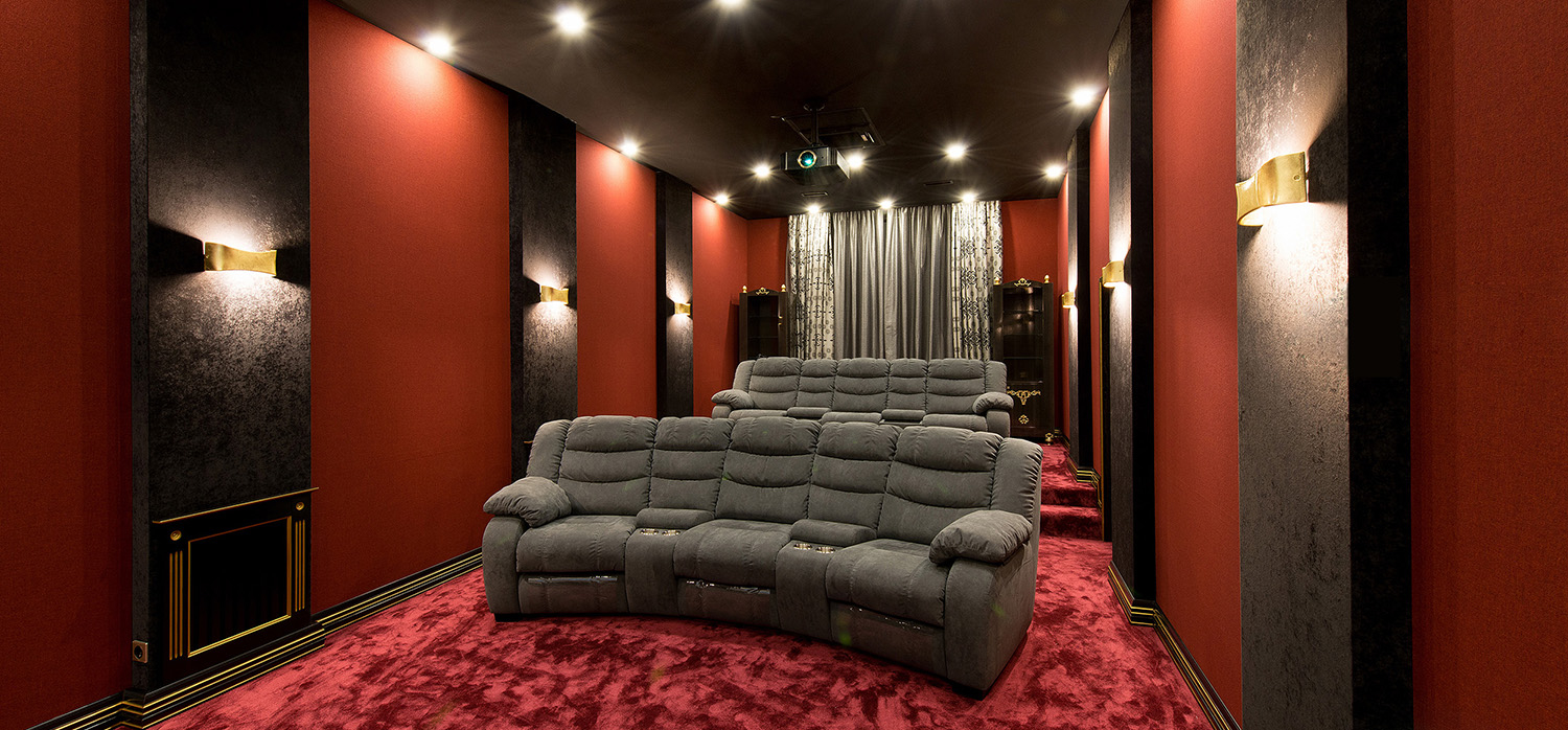 Основная концепция дизайна домашнего кинотеатра состояла в создании мягкого, комфортного помещения с обязательным размещением до 8 посадочных мест и скрытой системой звука. Респектабельный кинозал полностью ответил пожеланиям заказчика и стал сердцем его дома.