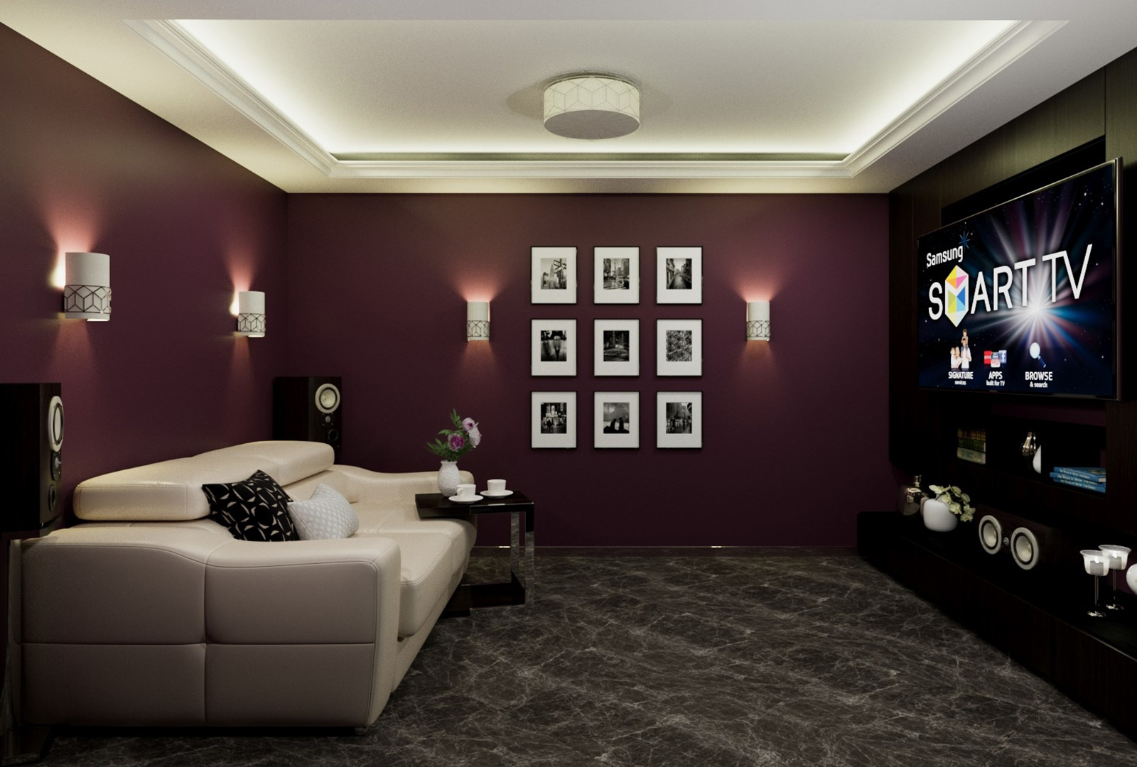 Аристократичный и в то же время функциональный цвет стен для домашнего кинотеатра будто предполагал контрастный, но не менее харизматичный диван. И Flex Solo прекрасно справился с этой задачей — кожа молочного оттенка «светится» на фоне стен цвета марсала. Глянцевая поверхность гостиной LEONARDO CURVE и кофейного столика Saint Tropez (möbel&zeit) идеально сочетаются друг с другом и перекликаются с цветовым решением двери и колонок. Оригинальный акцент от дизайнера – галерея имиджевых фото – будто переносит нас в Голливуд и погружает в сказочную атмосферу кино.