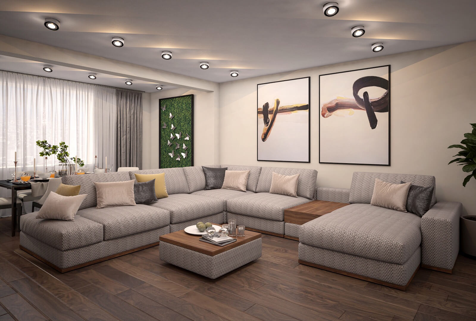 Для того, чтобы хозяев не отвлекали от отдыха в гостиной ни яркие цвета, ни броские детали, дизайнер выбрала диван Ontario как основу интерьера. Благодаря спокойным формам, благородным отделочным материалам и «интеллигентному» декорированию Ontario не будет подвержен сиюминутному влиянию моды.