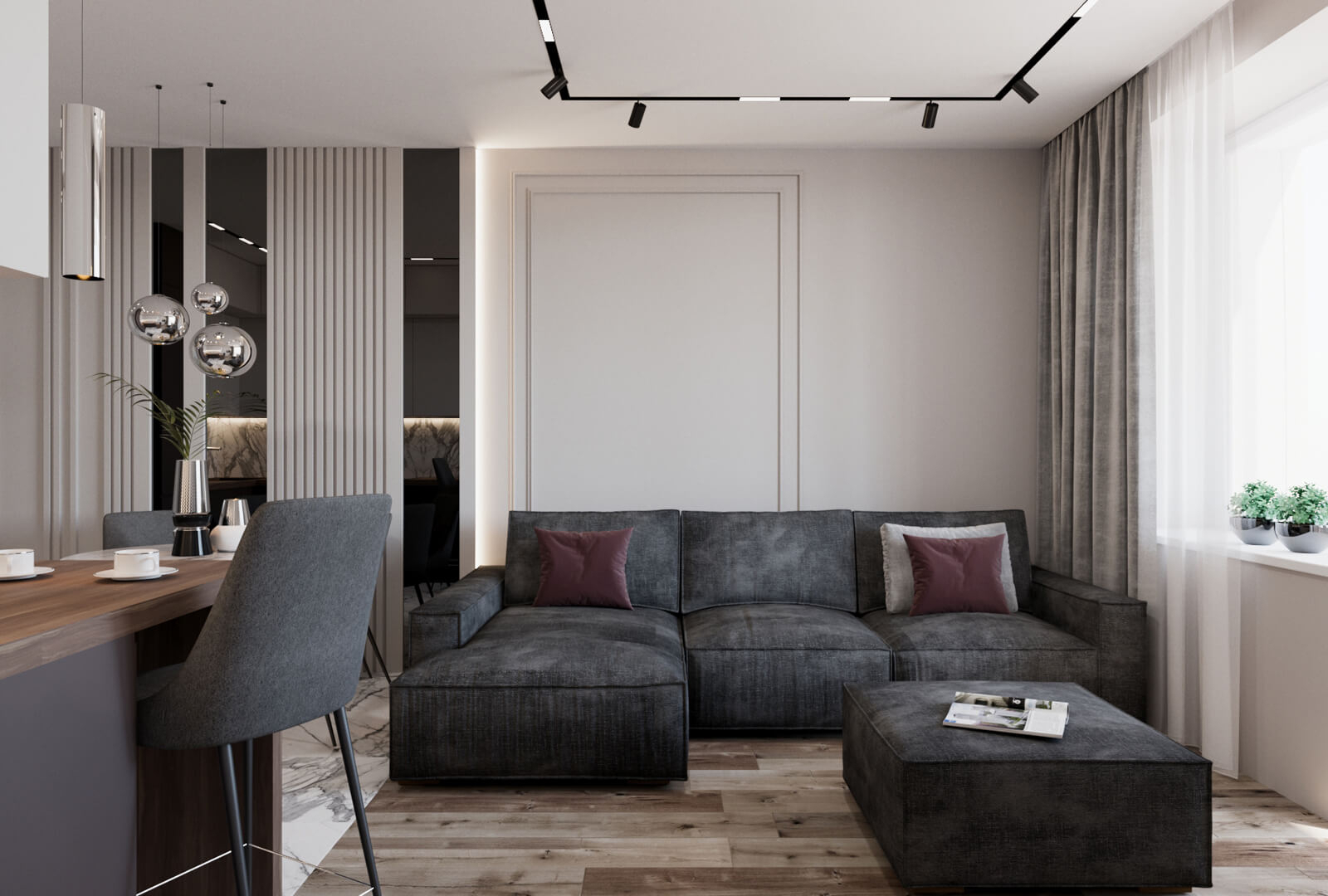 Родители двух замечательных детей являются сторонниками идеи, что обновлять интерьер квартиры нужно полностью, чтобы никому не было обидно. Большой дизайн-проект затронул как жилую зону, так и комнаты младших членов семьи. Обстановка помещений выполнена в едином функциональном городском стиле.