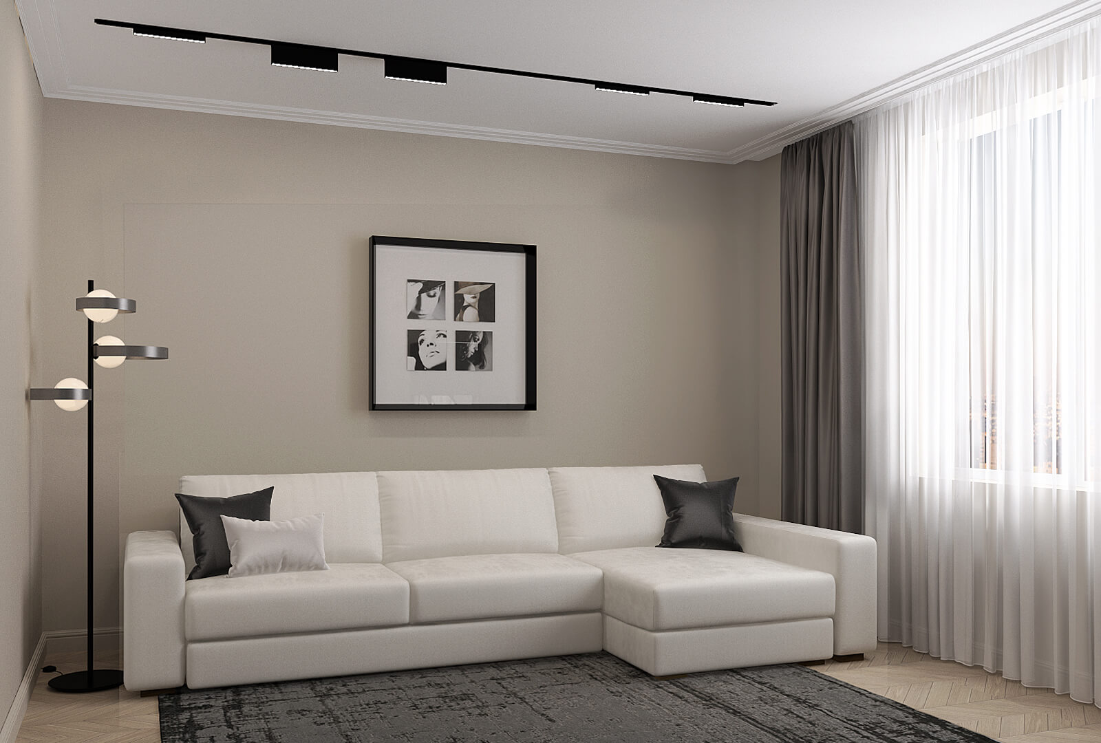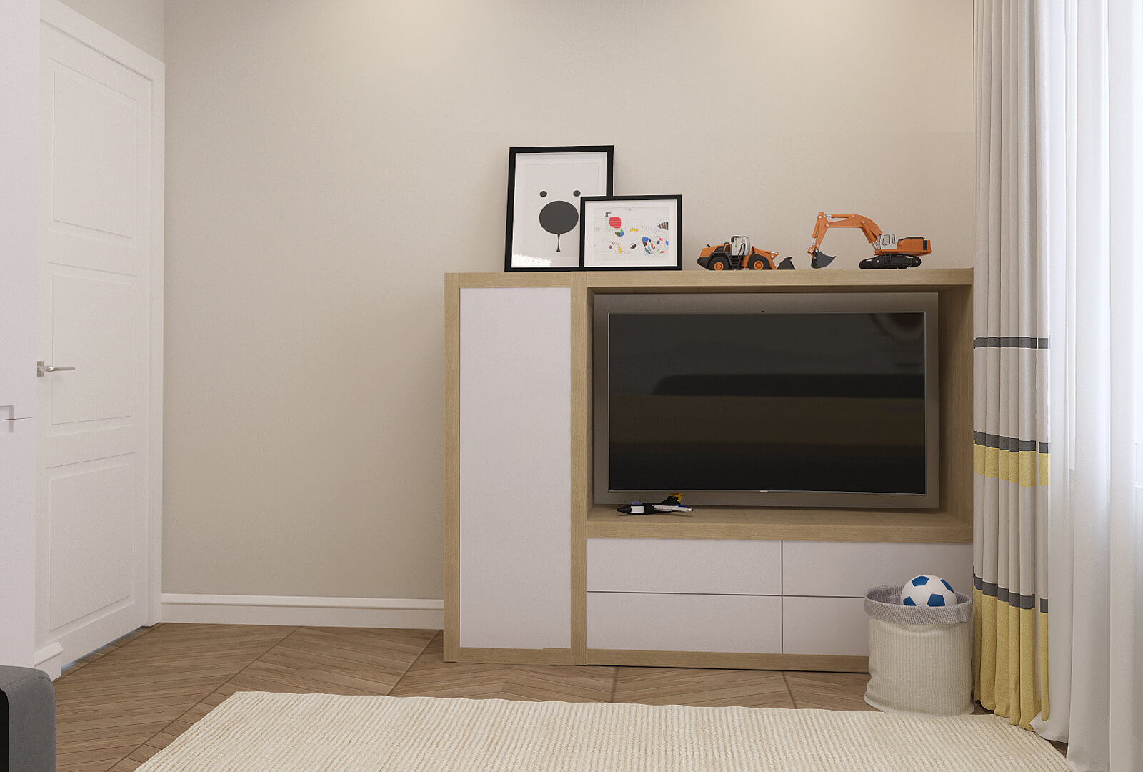 Ни для кого не секрет, насколько дедушки и бабушки любят баловать своих внуков. Так и в этом дизайн-проекте квартиры для пожилой пары детской комнате внука отведено значительное место. В детской комнате мы видим комфортный и эргономичный диван-кровать Ego-solo с немаркой темно-серой обивкой и контрастными декоративными подушками, которые гармонируют с оформлением стен и пространства. В большом шкафу S-Line поместится все необходимое для юного исследователя. Напротив дивана организована небольшая ТВ-зона с тумбой и шкафчиком Haus Exclusive. Для общей гостиной был выбран диван Grande Plain, на котором без проблем сможет разместиться большая семья. Стильная и оригинальная корпусная мебель от Leonardo Cube и Madrassi Amare не только украшает ТВ-зону на фоне стены с восточными мотивами, но и создаёт функциональное пространство для хранения различных вещей. За счёт прозрачных стеклянных полок и декоративной подсветки мебель не утяжеляет помещение и смотрится весьма необычно. Торшер Riflessi и аксессуары от Adriani Rossi также добавляют в интерьер интересные акценты. В спальне владельцев квартиры нас встречает большая комфортная кровать Bliss с мягкими царгами и высоким мягким изголовьем. Шкаф здесь так же из коллекции S-Line, только в другой комплектации. Прикроватное пространство оборудовано тумбами Ango – чтобы все необходимое всегда было под рукой.